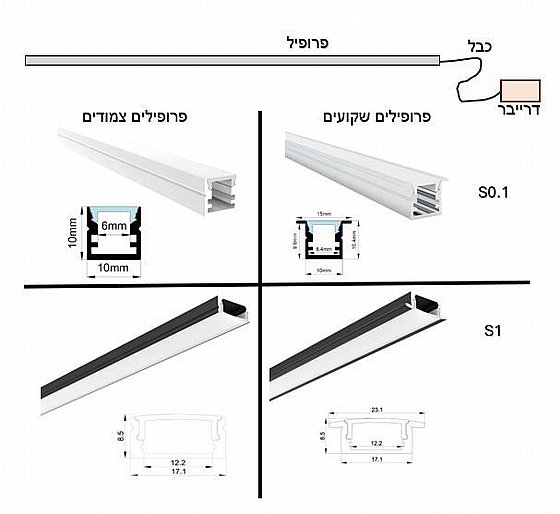 פרופיל תאורה 12 וואט למטר + כבל כ10 ס"מ